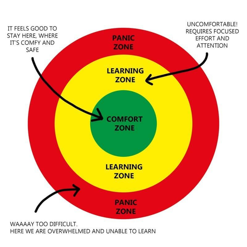 Hi {{ subscriber.first_name }}, Hard truth: It feels so good to stay where we are. We all tend to say this to ourselves when we see limitations and not possibilities in front of us. It’s comfy. On the other hand, others get too excited and embark on a way-too-big and unrealistic journey. This leads them to panic because it’s just a pipe dream. As a result, many people spend either too much time in their comfort zone or the panic zone: